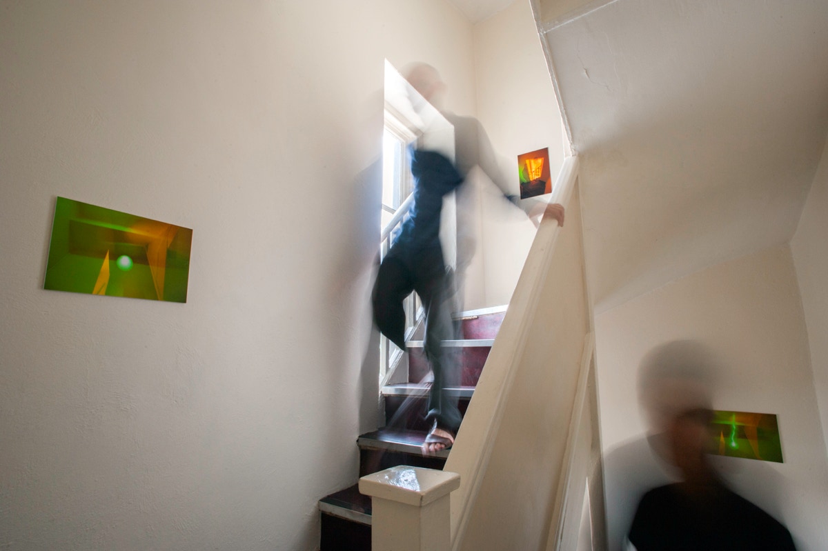 Each place has its own significance, ambience, and potential, just as every moment does. Space shapes function, appearance, and actions. During my art residency at The Guesthouse, I immersed myself in its unique dynamics, influenced by both design and people. I chose to stay within the space as much as possible, exploring its impact on my body and mind. Through attentive movement—listening, watching, feeling—I observed multiple identities shaping reality. I created abstract, invisible selves that influence every action, sometimes subtly, sometimes profoundly. These images highlight the imprint of every presence, the change it brings, and the unseen aspects of space and time.