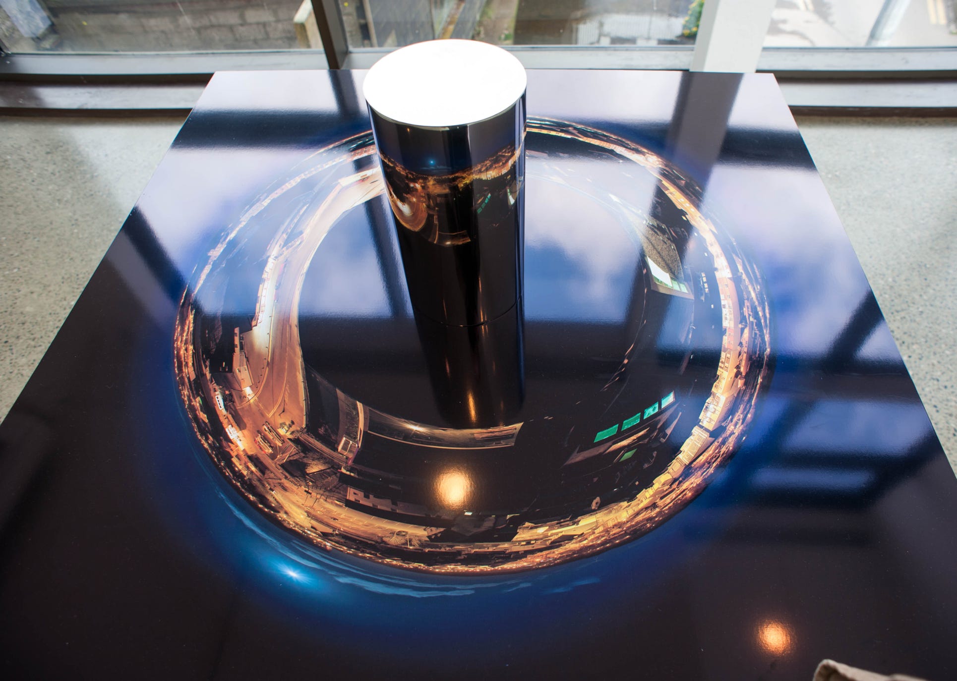 Anamorphic image showing 360 degrees panorama of Skibbereen captured at night seen form the roof of the new Art Centre.