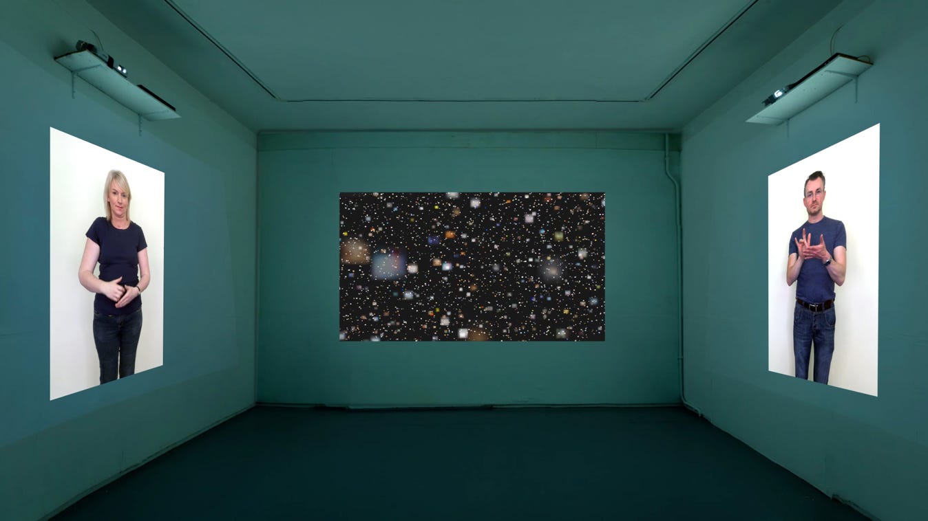 The third part of the exhibition is called “Realms of Communication”. It opens the gallery space to the outer world through information which comes from the internet, the unknown, immeasurable virtual space.