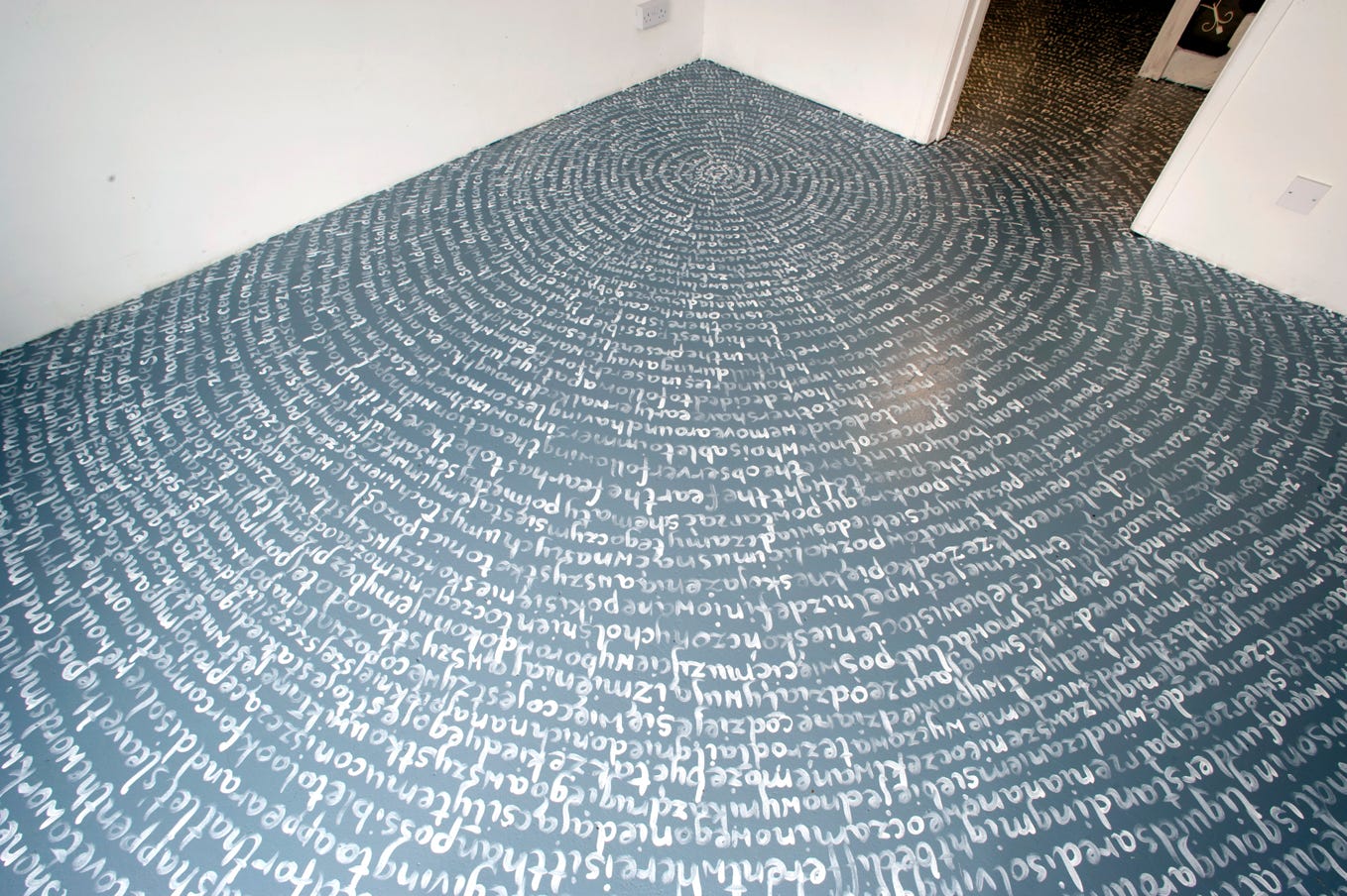 “Mind Gardens” 2011, an exhibition created in Skibbereen, Ireland, questioning belonging and the sense of identity. A stream of consciousness written on the gallery floor. Written in Polish and English.