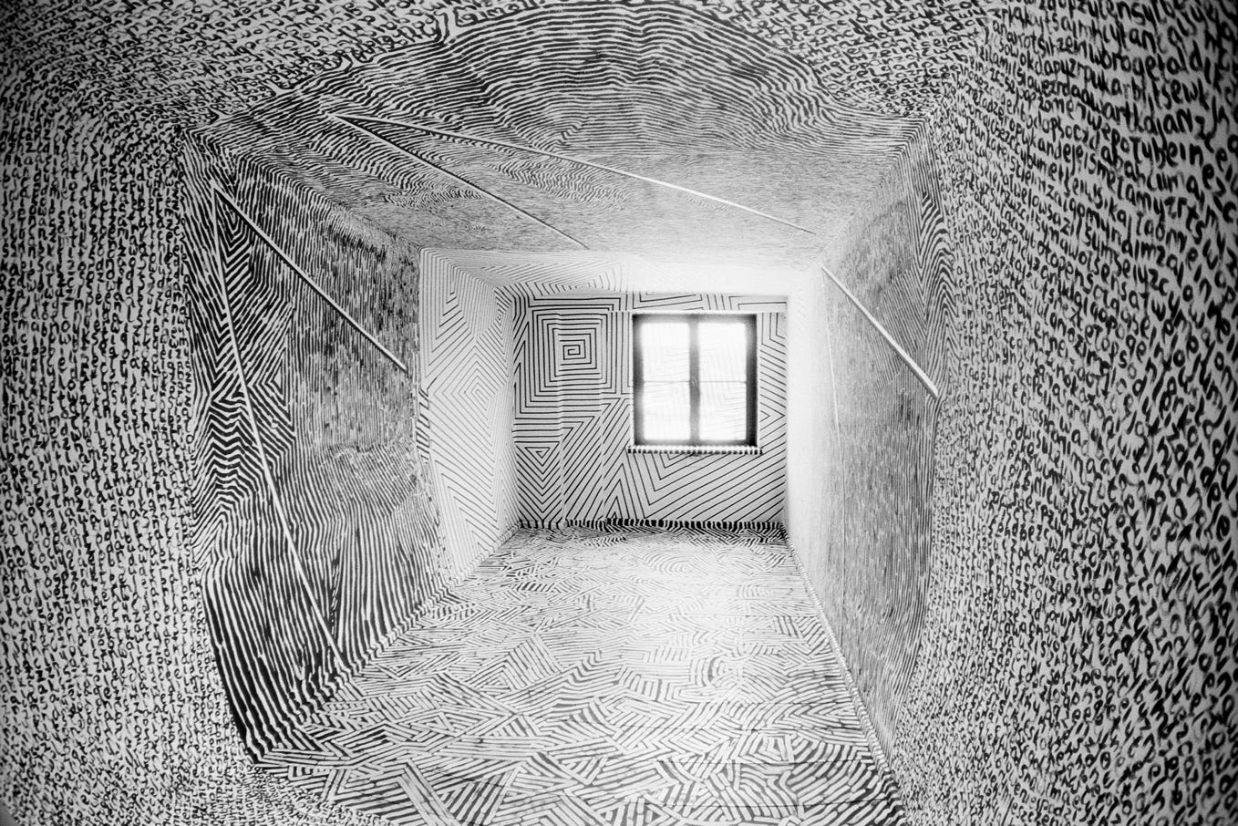 “Lines” 2000/2001, a room transformed into an active art dialogue during an art festival in Kłodzko, Poland. From the written word - Tomasz Madajczak, through painting - Witold Liszkowski, towards geometry - prof. Jerzy Olek.